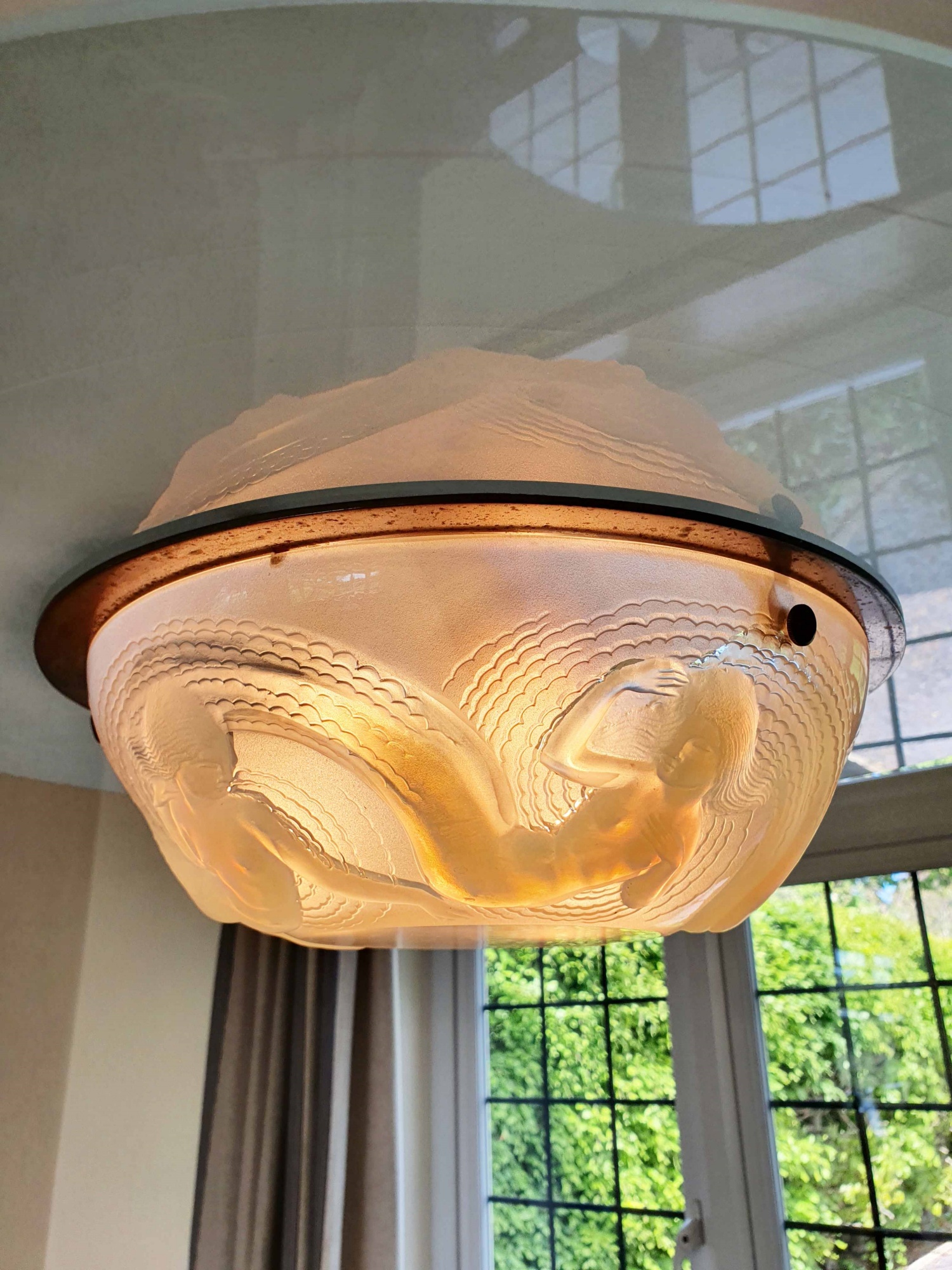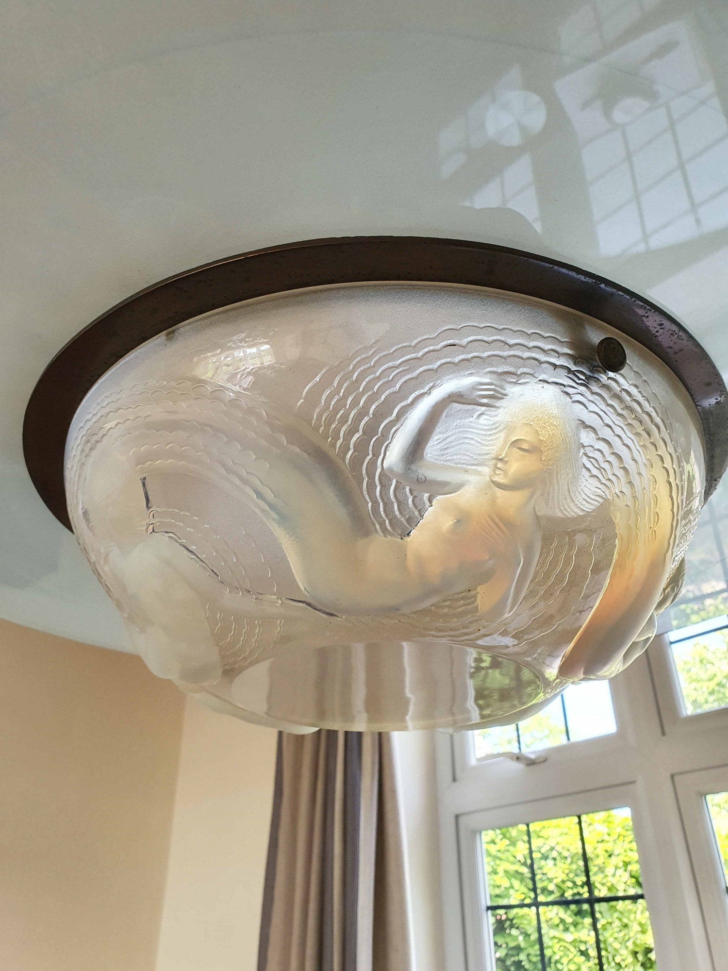René Lalique | “Calypso” Opalescent Glass Art Deco Plafonnier | France c.1920