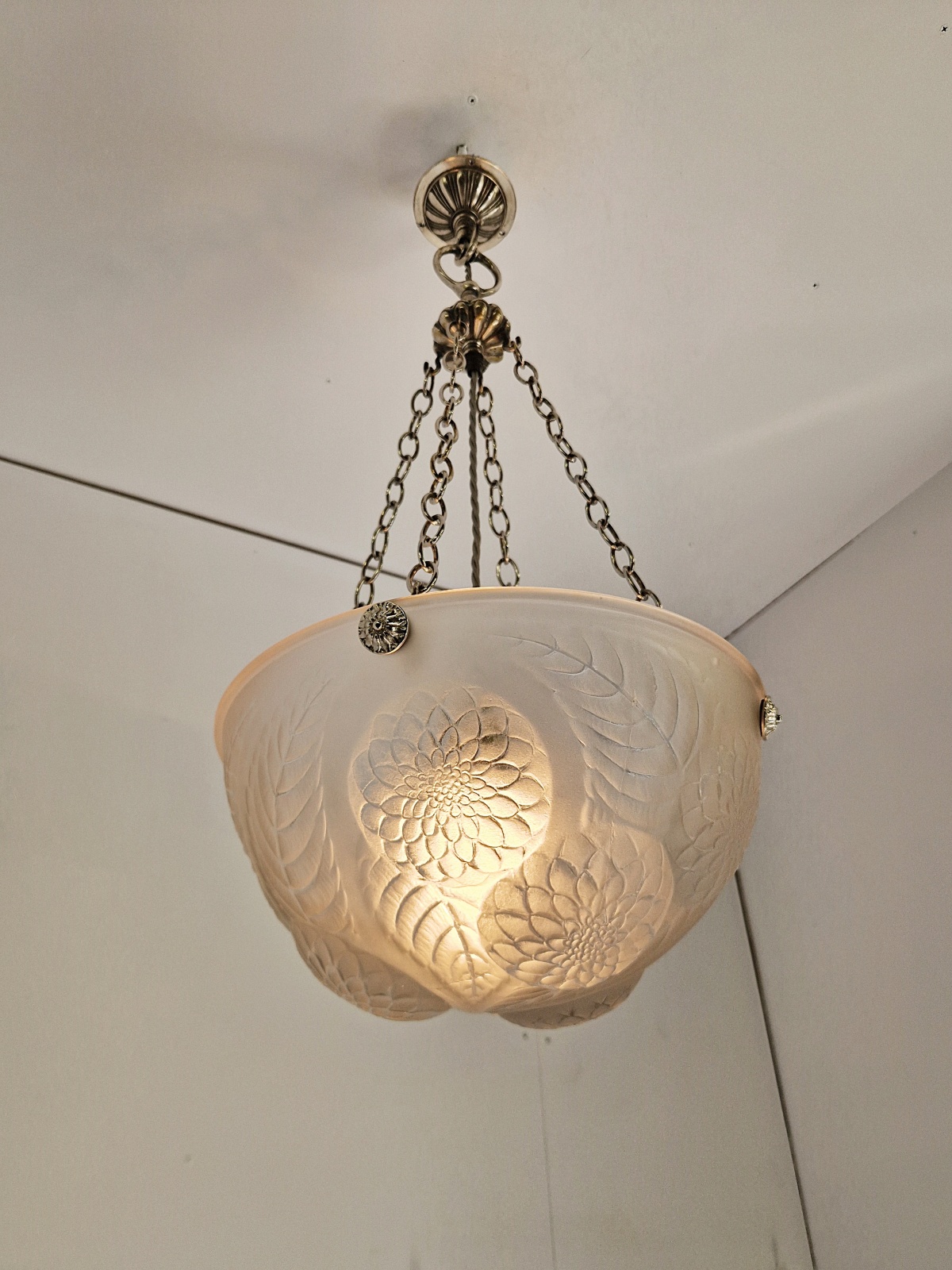René Lalique | 2 “Dahlia” Frosted-glass Plafonniers | France c.1930