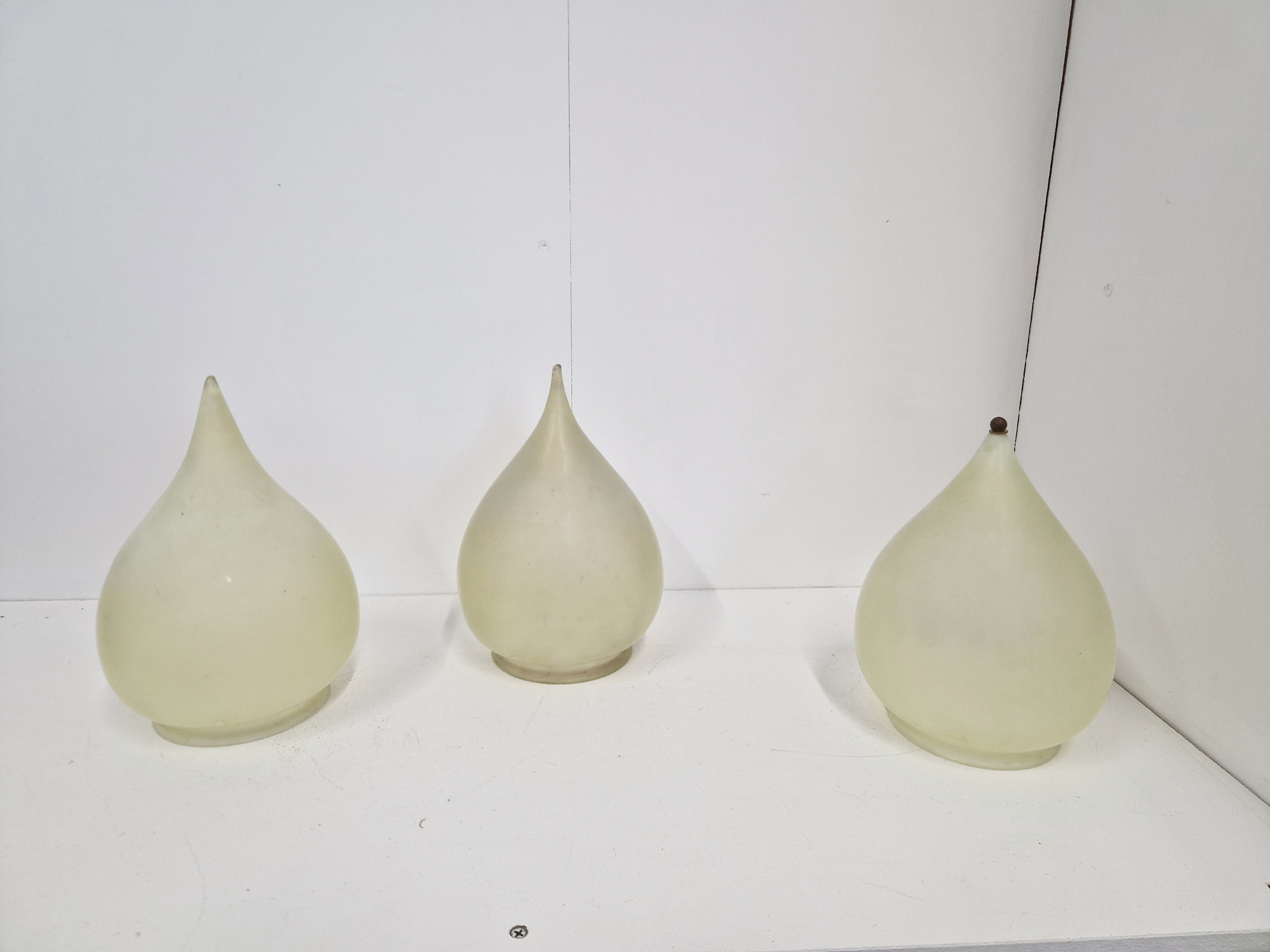 - 1 shade missing glass point and replaced with brass finial, see final photos)